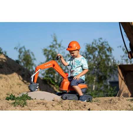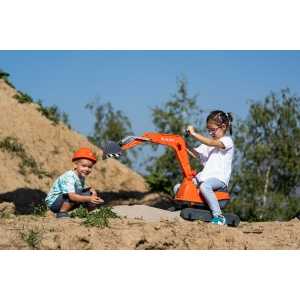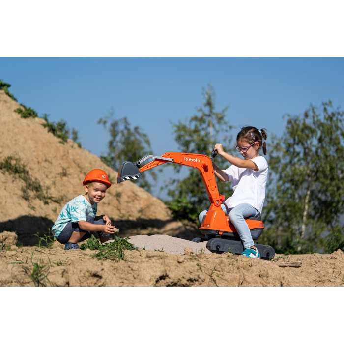 Need a place to stash toys or tools? No problem! This digger features a storage compartment, perfect for holding construction tools or other favorite toys. And with the included kid-sized helmet, your child can suit up like a true construction crew member. This Kubota digger excavator ride-on toy promises endless hours of imaginative play and adventure. Bring the excitement of the construction site into your backyard!